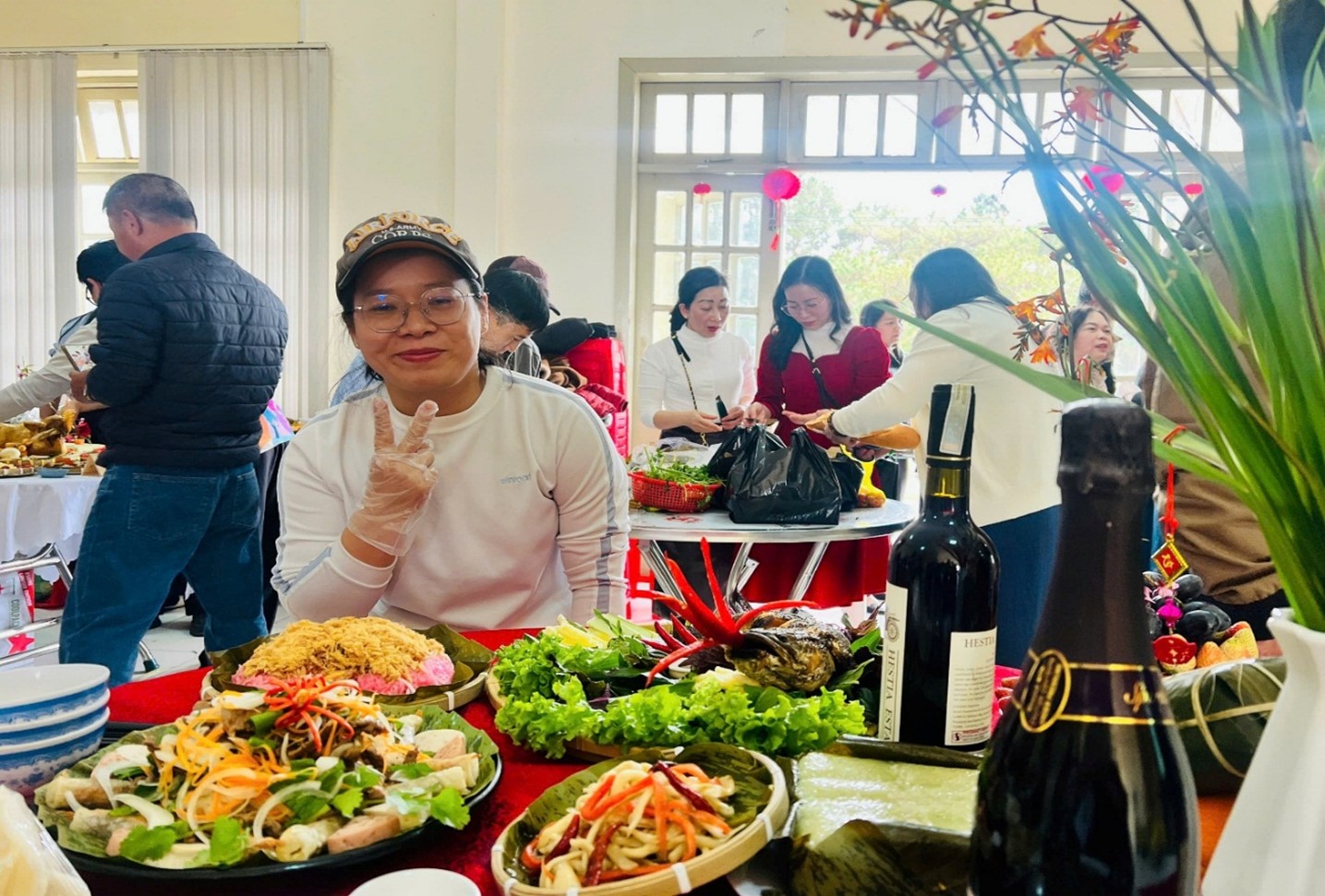 Không khí vui tươi, rộn ràng của công đoàn viên bên mâm cơm ngày Tết
