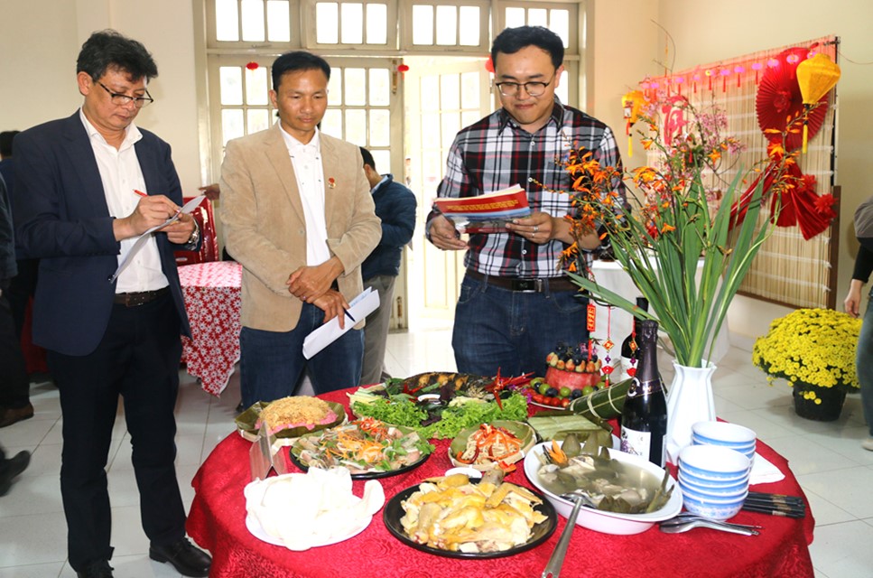 Ban giám khảo chấm điểm “Mâm cơm ngày Tết” của các đội dự thi